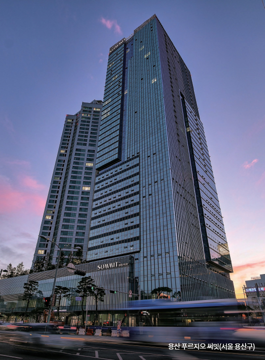 주상 복합 아파트의 전형으로 손꼽힙니다. 또한 용산 푸르지오 써밋은 대우건설의