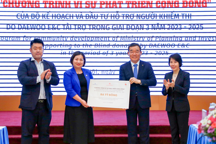 대우건설(대표이사 백정완)이 베트남 기획투자부(MPI1))를 통해 베트남 현지 시각장애인 지원프로그램인 ‘Program for Community Development(커뮤니티 발전 프로그램)’에 3년간 30억동(약 1.7억원)을 기부한다고 18일 밝혔다.