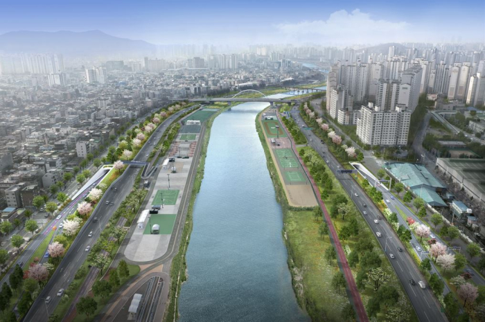 <사진설명: 동부간선도로 지하화 사업 조감도(중랑천 횡단면)>