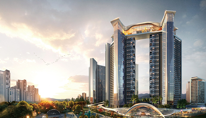 대우건설은 현재 과천지역에서 유일하게 중대형 평형으로만 이루어진 과천주공5단지를 재건축 후에도 소형평형이 없는 100% 중대형평형으로만 설계해 단지의 희소성을 높였다. 세계적인 명성을 가진 독일의 레하우(REHAU) 시스템 창호와 이탈리아 명품 주방가구인 유로모빌(Euromobil)/베네타 쿠치네(Veneta Cucine) 등 최고 품질의 마감재를 적용했으며, 타워PMC와 업무협약을 체결해 국내 최고 수준의 VVIP 컨시어지 서비스를 제공할 예정이다. [대구 동구43구역(센트럴 마크) 조감도]