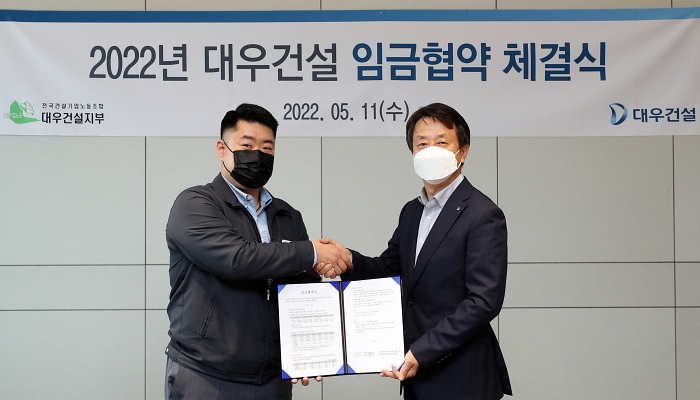 대우건설 노사(백정완 대표이사, 심상철 노동조합 위원장)가 11일 올해 평균 임금인상률 10%에 최종 합의하고 임금협약을 체결했다고 12일 밝혔다. 대우건설 노사는 동종사 대비 임금경쟁력 및 채용경쟁력 강화를 고려하여 하후상박(下厚上薄) 개념을 적용해 직급별 인상률을 차등 적용하기로 했다. 이에 따라 올해 입사한 대졸 신입사원 초임이 5천만원을 상회하게 된다.